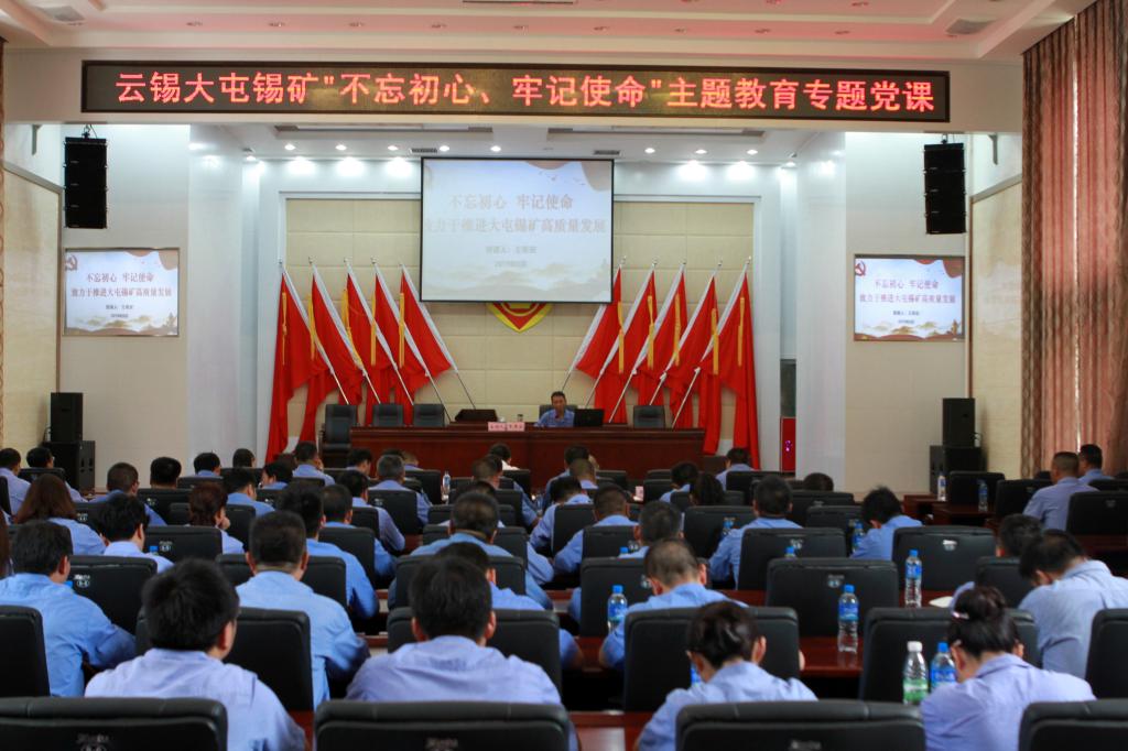 大屯錫礦領導班子成員、各基層單位黨政主要領導、各黨總支下屬黨支部書記、礦機關全體黨員共110余人聆聽黨課。(王熙)